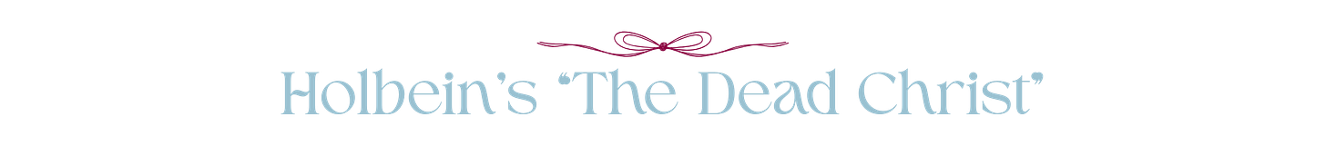 This striking painting by Hans Holbein is the gravitational center of this novel. Dostoevsky came face to face with this very painting in the Kunstmuseum Basel in 1867. In her memoirs, Anna Grigorievna, Dostoevsky’s second wife, recalls: